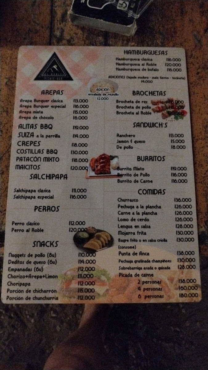 The menu at Picnic Bar El Roble in Dorada, Caldas, offers a delightful blend of traditional Colombian flavors and refreshing drinks that cater to a variety of tastes. One standout item is the Michelada, a tangy and refreshing beer-based cocktail perfect for a hot day. For those looking to enjoy a shared meal, the Picada Para 2 Personas and the larger Picada 6 Personas are great options, featuring a hearty selection of meats, cheeses, and sides that will satisfy any group.